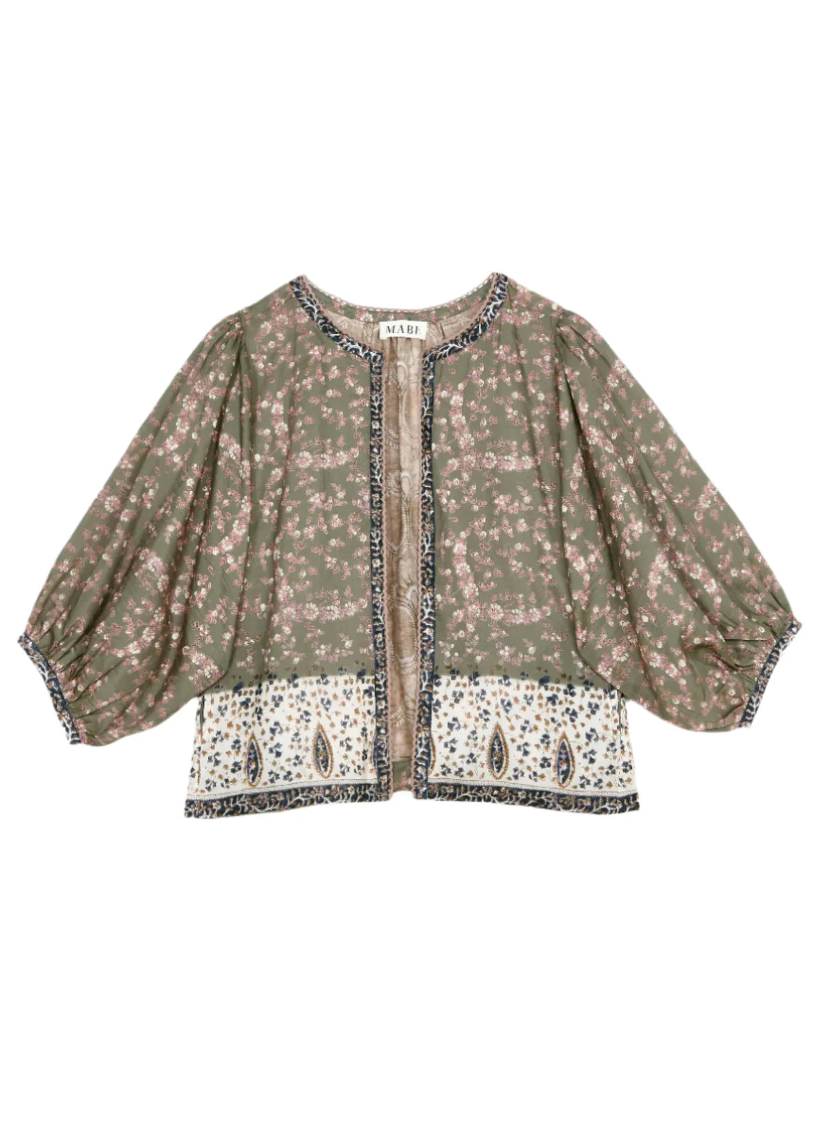 Indulge in the beauty and sophistication of Mabe's Bani Jacket. Designed with a stunning floral pattern, the printed cotton silk fabric exudes luxury. Featuring a relaxed fit with gathered details on the body and 3/4 sleeves. Complete with a charming contrast print lining and delicate lace trims, it's the perfect blend of elegance and ease. With convenient side slip pockets, it's the perfect addition to your wardrobe.