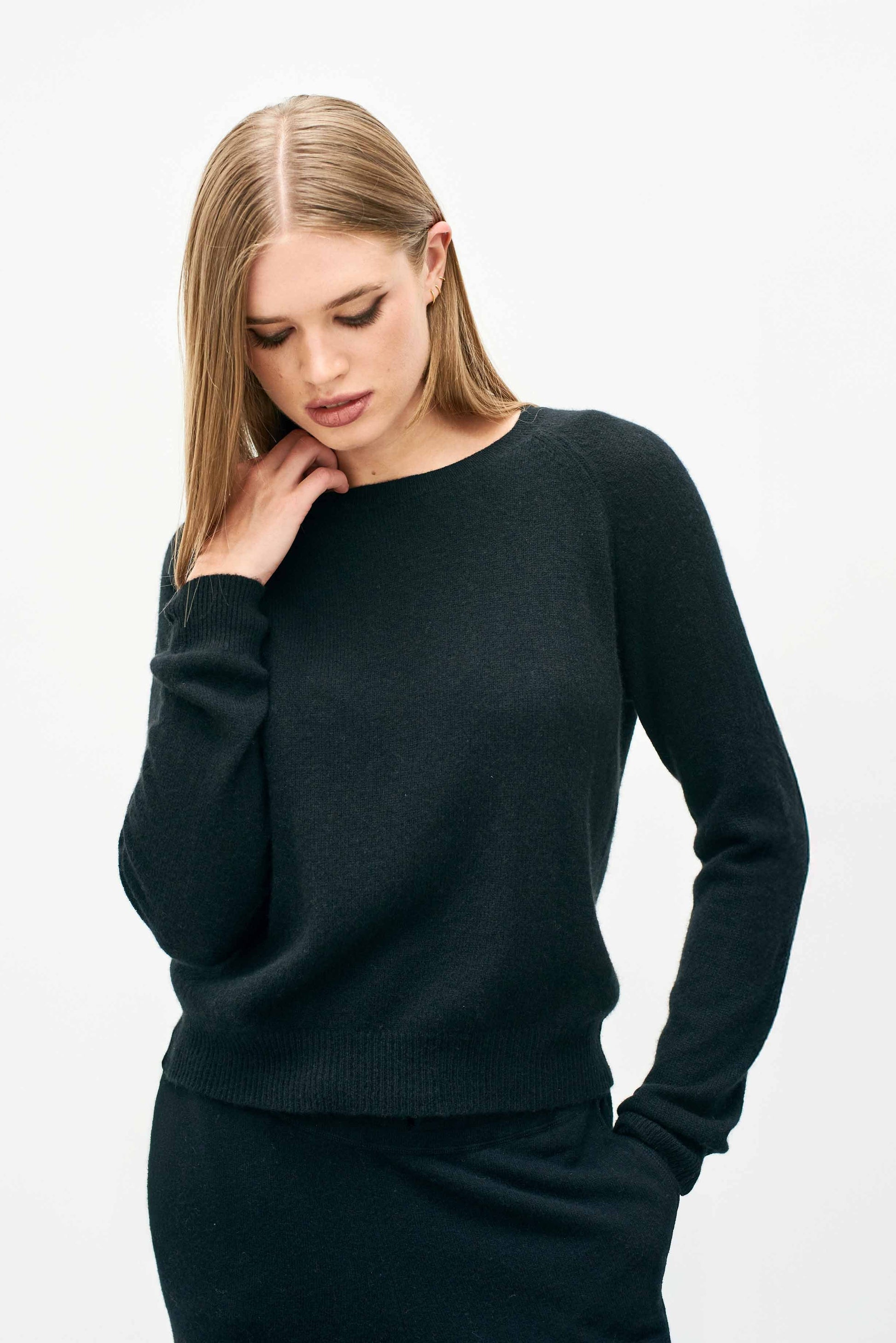 Experience timeless elegance with Jumper 1234 Crop Crew in Black, crafted from lightweight cashmere for exceptional softness and comfort. Featuring raglan sleeves and a slightly cropped length, this refined silhouette offers a modern twist on a classic staple, making it an essential piece for any sophisticated wardrobe.
