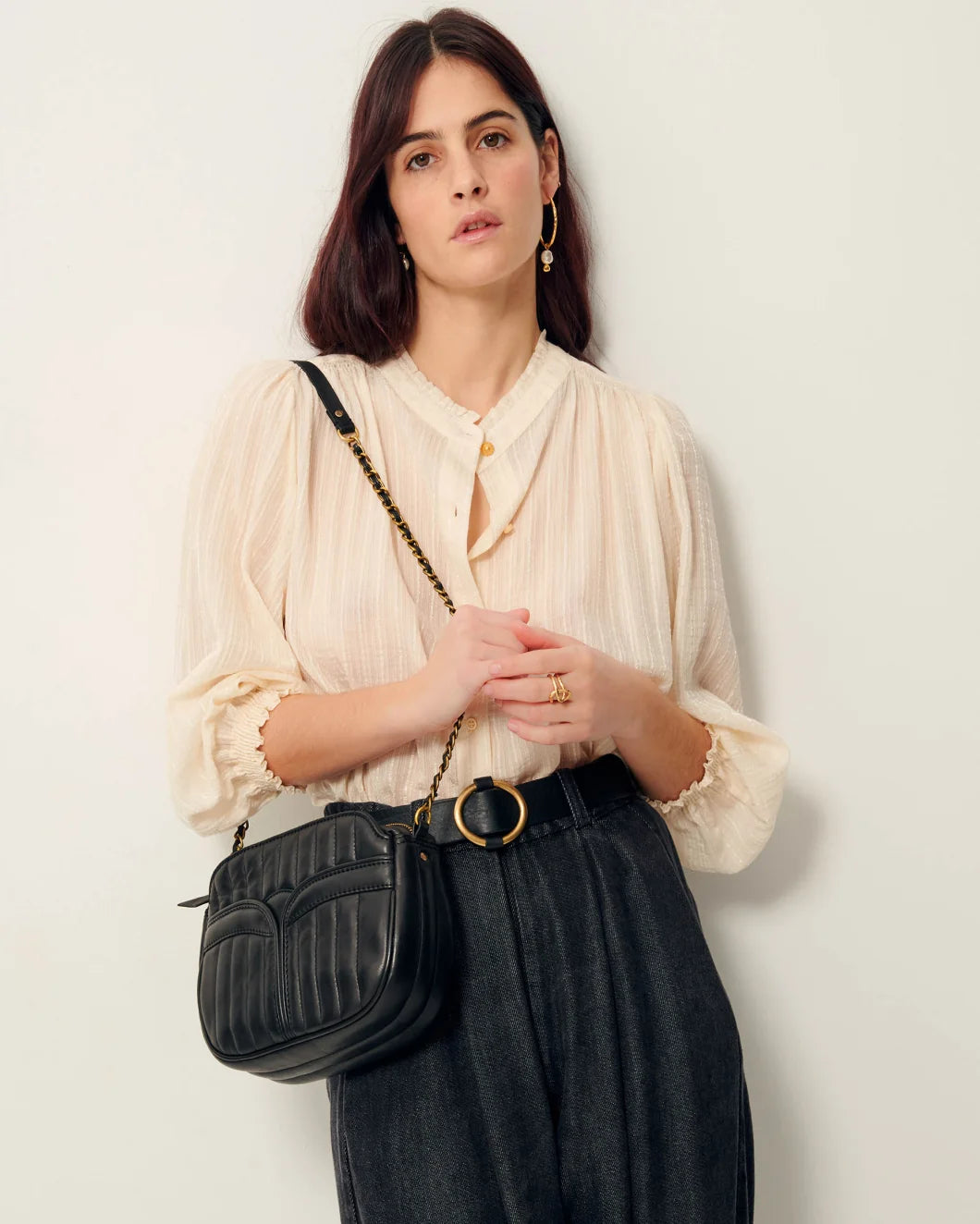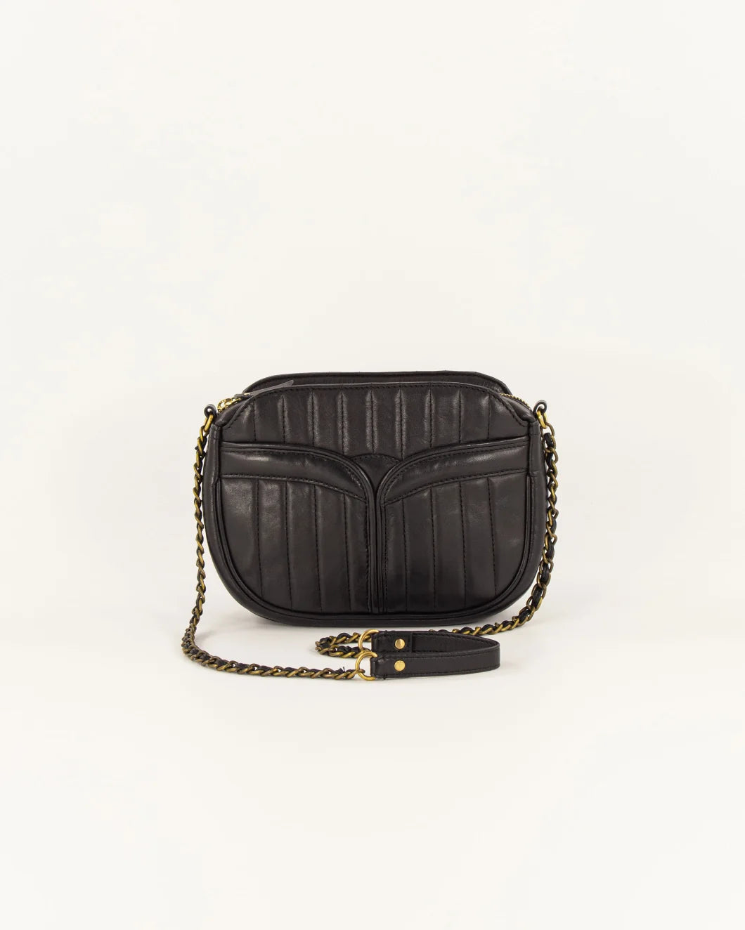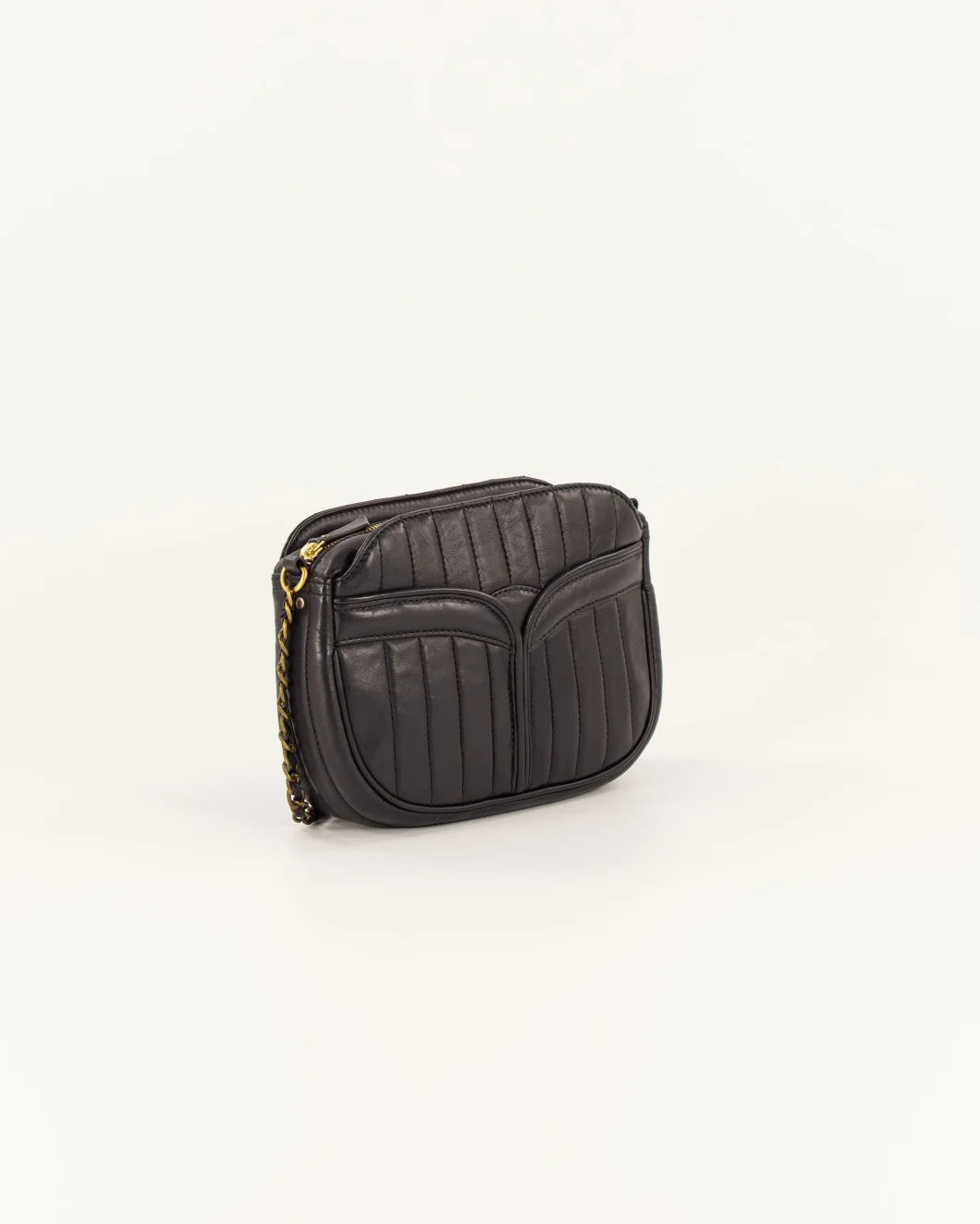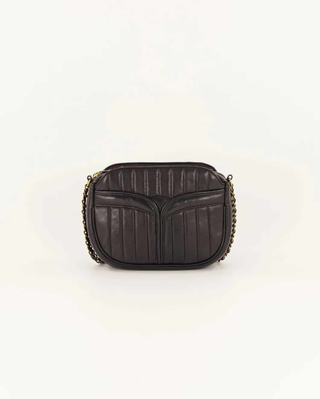 Elevate your style with the Devine Leather Crossbody, crafted from topstitched, quilted lamb leather for a refined look. Featuring a spacious central zipped compartment alongside two large exterior pockets, it offers practical organization without compromising elegance. The antique gold-finish hardware and metal zip closure add subtle luxury, while the 110 cm chain strap provides comfortable wear. Finished with a soft cotton lining, this sophisticated bag blends timeless design with everyday functionality.