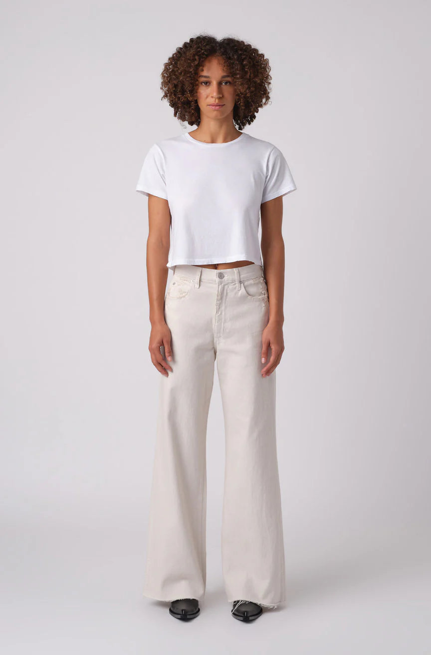 Featuring a sophisticated high-rise, wide-leg silhouette, the Frida White Oak offers a flattering fit through the hip and thigh for effortless comfort. Detailed with subtle distressing at the pockets and a refined raw frayed hem, these jeans balance modern edge with everyday wearability. Finished with a zip fly, they elevate your denim collection with timeless style and ease.