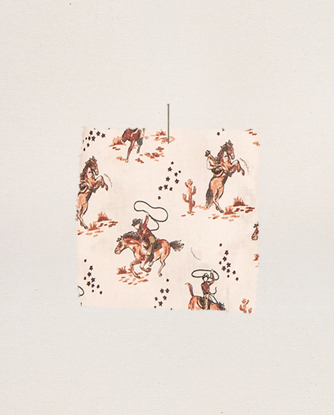 The Easy Sleep Pant, crafted from the softest 100% cotton in a refined Western-inspired Cowboy Print. Featuring a wide leg, a slightly dropped rise, and an elastic high waist, these pants offer a relaxed yet elegant silhouette. Finished with a piped cuff, they pair effortlessly with the matching sleep top—perfect for graceful mornings spent at home.