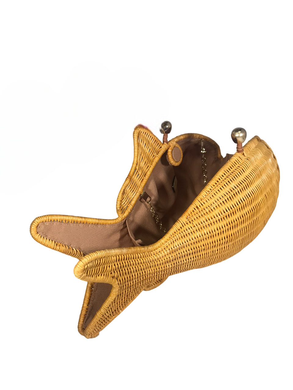 Stand out in style with the Theo Fish crossbody bag from Serpui. The intricate fish design curves perfectly on your body, adding a unique touch to any outfit. The detachable gold chain allows for versatile wear as a clutch or crossbody. Make a statement with this one-of-a-kind bag.
